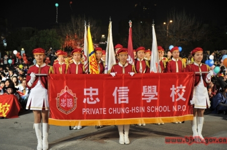 臺灣忠信學校的學生參加元宵走街(邢慶 攝)