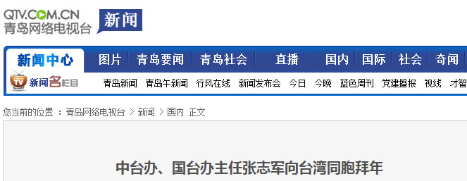 [青島網絡電視臺]中臺辦、國臺辦主任張志軍向臺灣同胞拜年(圖)