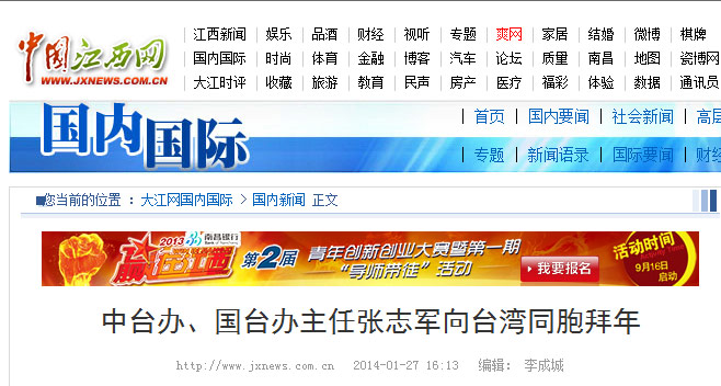 [中國江西網]中臺辦、國臺辦主任張志軍向臺灣同胞拜年(圖)