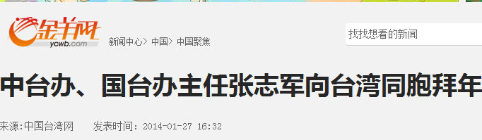 [金羊網]中臺辦、國臺辦主任張志軍向臺灣同胞拜年(圖)