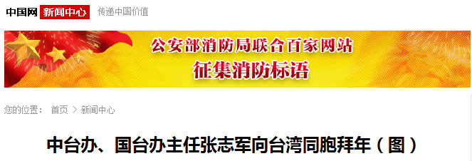 [中國網]中臺辦、國臺辦主任張志軍向臺灣同胞拜年(圖)