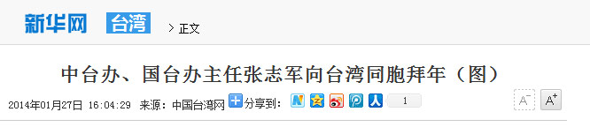 2014-01-27 16:36 來源:中國臺灣網 字號:     轉發 打印