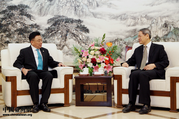 4月16日上午,中共中央臺辦、國務院臺辦主任張志軍會見了臺企聯會長郭山輝等一行。(中國臺灣網發 陳筠 攝)