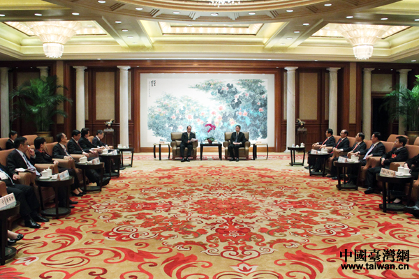中共中央臺辦、國務院臺辦主任張志軍21日在上海會見了臺灣海基會董事長林中森一行。海協會會長陳德銘等參加會見。(中國臺灣網 于斯文 攝)
