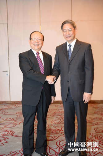 中共中央臺辦、國務院臺辦主任張志軍近日在中山市會見了前來出席第二屆海峽兩岸中山論壇的新黨主席鬱慕明。(中國臺灣網發)