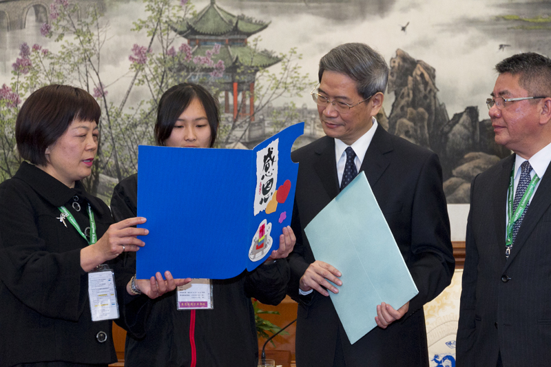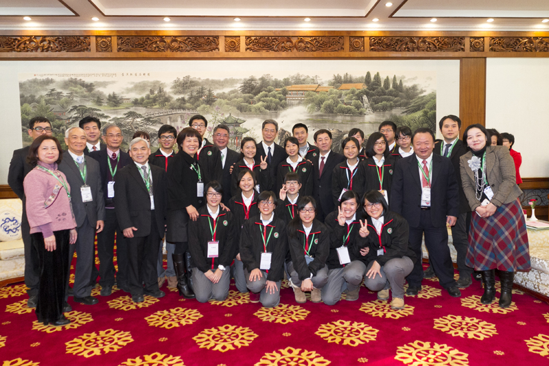 中共中央臺辦、國務院臺辦主任張志軍10日在北京會見了東莞臺商子弟學校葉宏燈董事長率領的畢業班學生“北京文化之旅”參訪團一行。