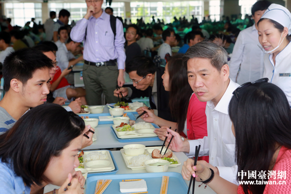 中國臺灣網5月15日杭州消息 中共中央臺辦、國務院臺辦主任張志軍15日中午來到浙江大學,與在這里就讀的臺灣學生一同排隊打飯,並在食堂餐敘。(中國臺灣網記者 于斯文)