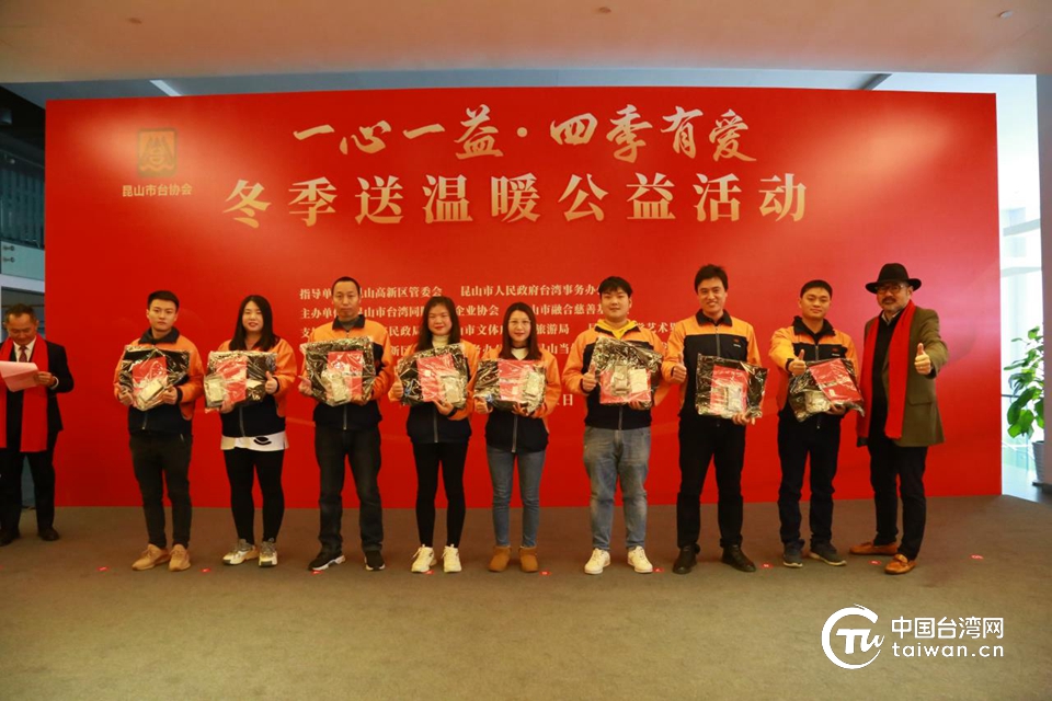中國臺灣網1月22日訊 1月21日中午,由昆山市臺協會、昆山市融合慈善基金會共同舉辦的“一心一益·四季有愛”冬季送溫暖公益活動在研華科技(中國)有限公司舉行。昆山市委常委、昆山高新區黨工委副書記、管委會副主任孫道尋出席活動,並為留昆過年的臺商代表送上新春祝福。