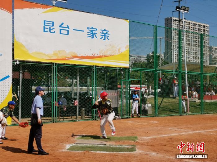 10月11日,兩岸慢壘球員以球會友,一道在球場上比拼。 中新社記者 鐘升 攝