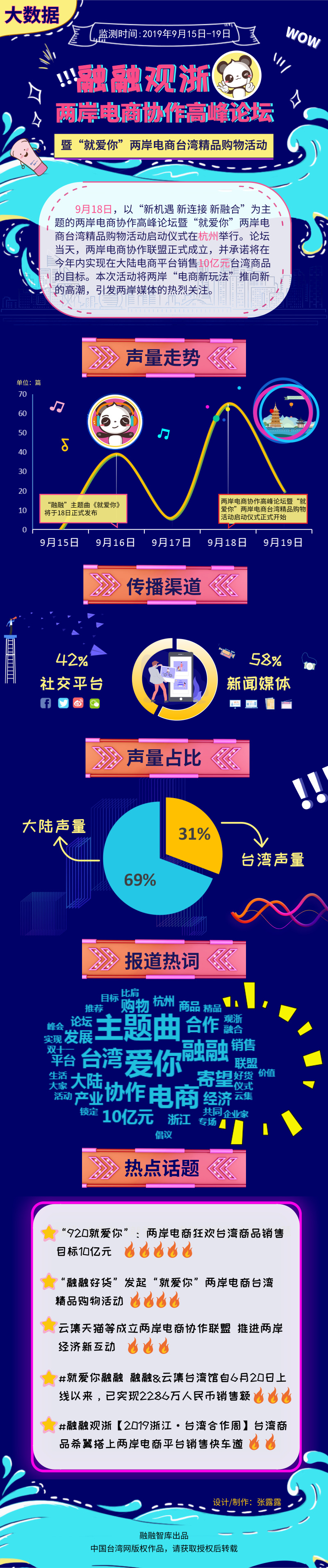 9月18日,以“新機遇 新連接 新融合”為主題的兩岸電商協作高峰論壇暨“就愛你”兩岸電商臺灣精品購物活動啟動儀式在杭州舉行。論壇當天,兩岸電商協作聯盟正式成立,並承諾將在今年內實現在大陸電商平臺銷售10億元臺灣商品的目標。本次活動將兩岸“電商新玩法”推向新的高潮,引發兩岸媒體的熱烈關注!