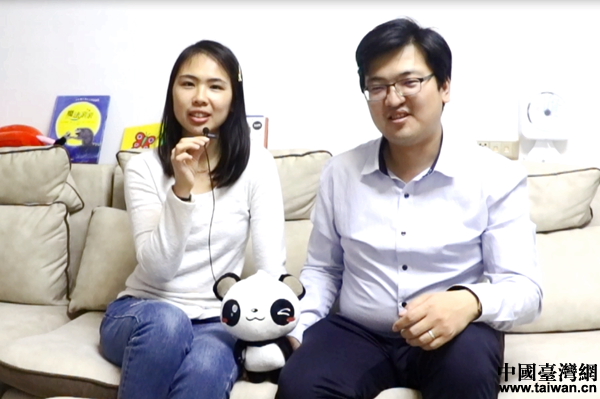 馮天佑、曾莉雯夫婦向記者講述他們的愛情故事。(中國臺灣網 尹賽楠 攝)