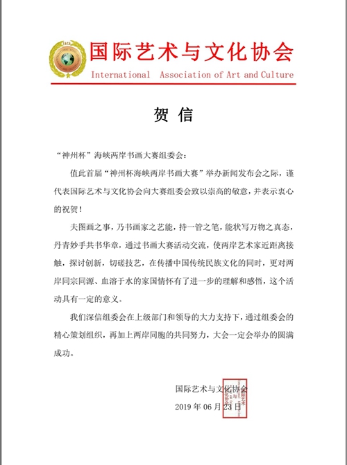 國際藝術與文化協會向大賽組委會發來賀信