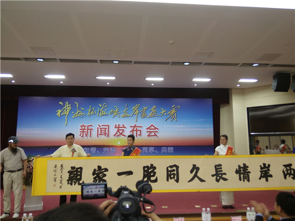 “以‘神州杯’命名,意在兩岸同屬一個中國,同在一片神州大地。”趙長青在致辭中指出,書畫藝術是中華民族的瑰寶,舉辦本次活動的目的,就是希望通過書畫比賽的形式,搭建起一座文化交流的橋梁,讓兩岸同胞的心連接的更加緊密。“兩岸同胞同宗同源,血脈相連,打斷了骨頭連著筋,是任何人、任何勢力都無法分割的,希望通過本次活動的舉辦,用藝術交流和文化溝通,讓海峽兩岸的中國人心更近、情更濃。”