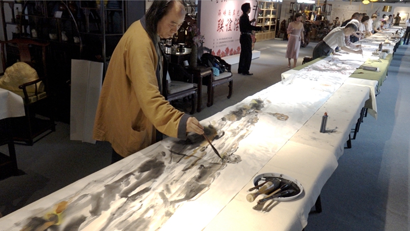 花為媒·雲臺興,第8屆雲臺會期間,雲臺兩地24位藝術家齊聚昆明,現場揮毫潑墨,用4小時時間共同繪制長達44.66米的書畫長卷,以表達對雲臺會的祝福。
