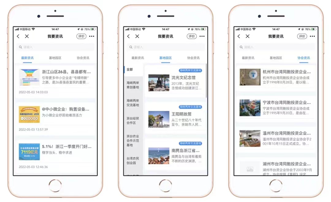 想在浙江就業創業,哪里有青年就業創業基地?想了解更多海峽兩岸交流基地,哪里能拔草打卡?我是在浙臺商,如何找到當地的臺資企業協會資訊?進入“我要資訊”模塊,就能找到答案!
