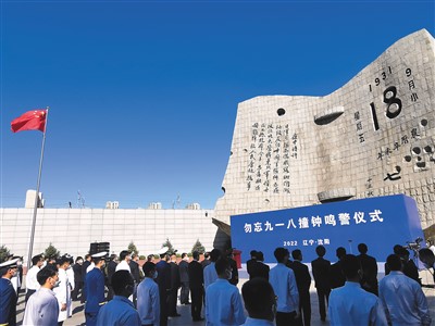 新華社沈陽9月18日電 (記者于也童、崔師豪)今年是九一八事變爆發91周年。18日上午,勿忘九一八撞鐘鳴警儀式在沈陽“九一八”歷史博物館殘歷碑廣場舉行。