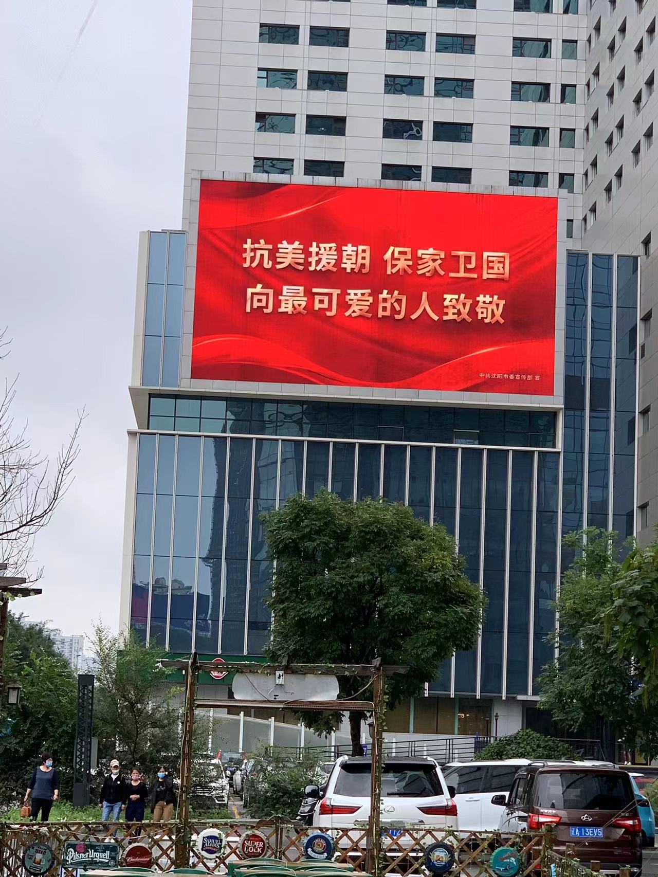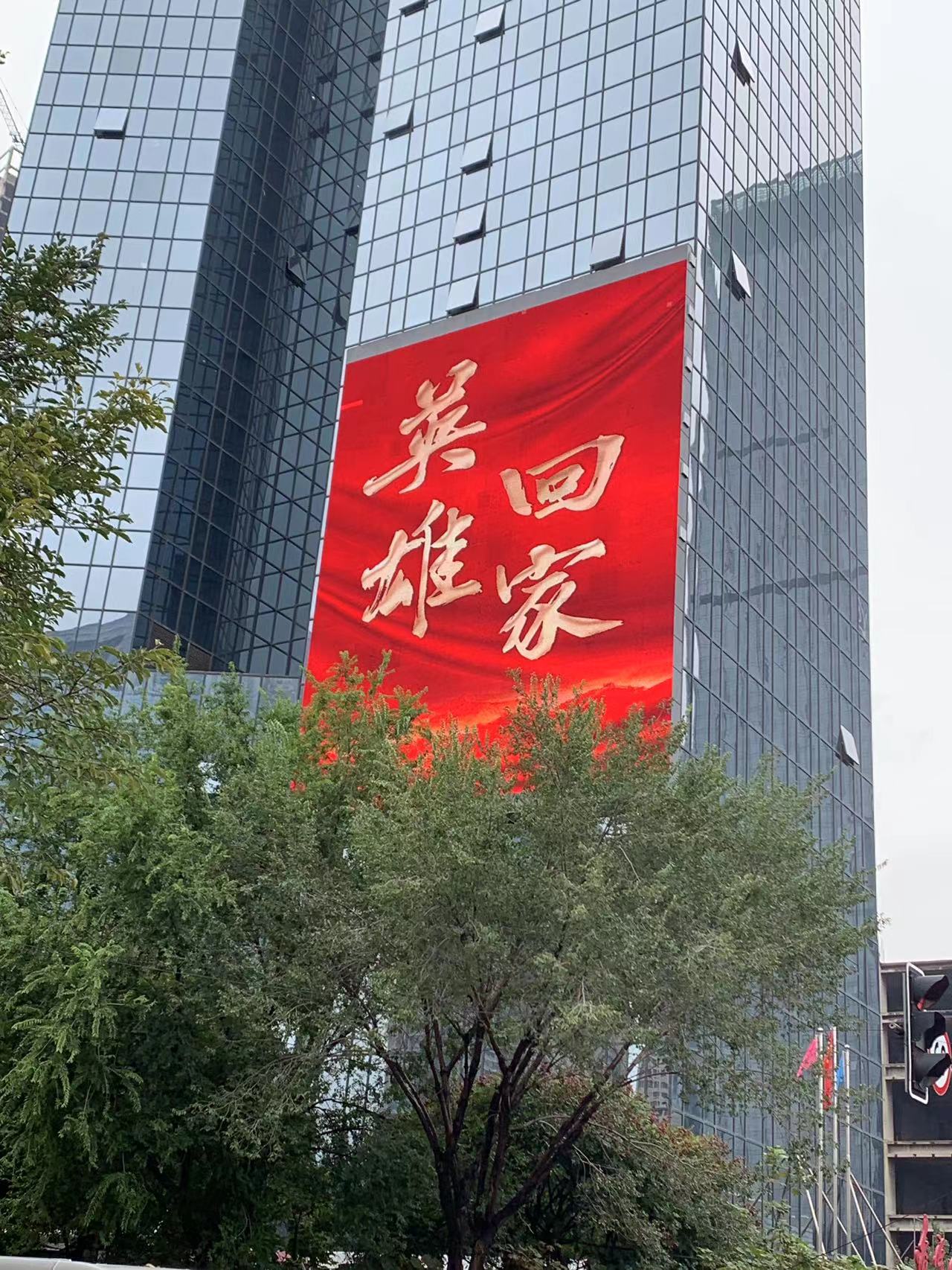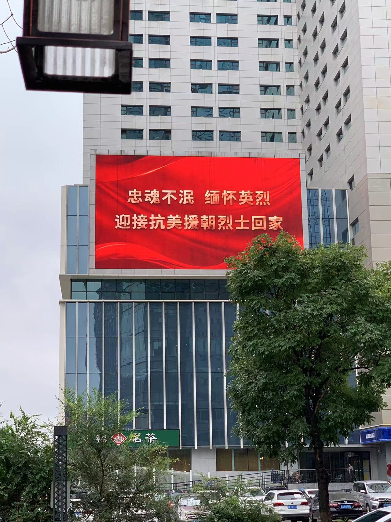 沈陽全城致敬,樓宇大屏幕上寫著“熱血灑疆場 忠魂歸故鄉”、“向最可愛的人致敬”,行駛在路上的出租車滾動字幕“英雄回家”,市民紛紛向英烈致以最崇高的敬意。