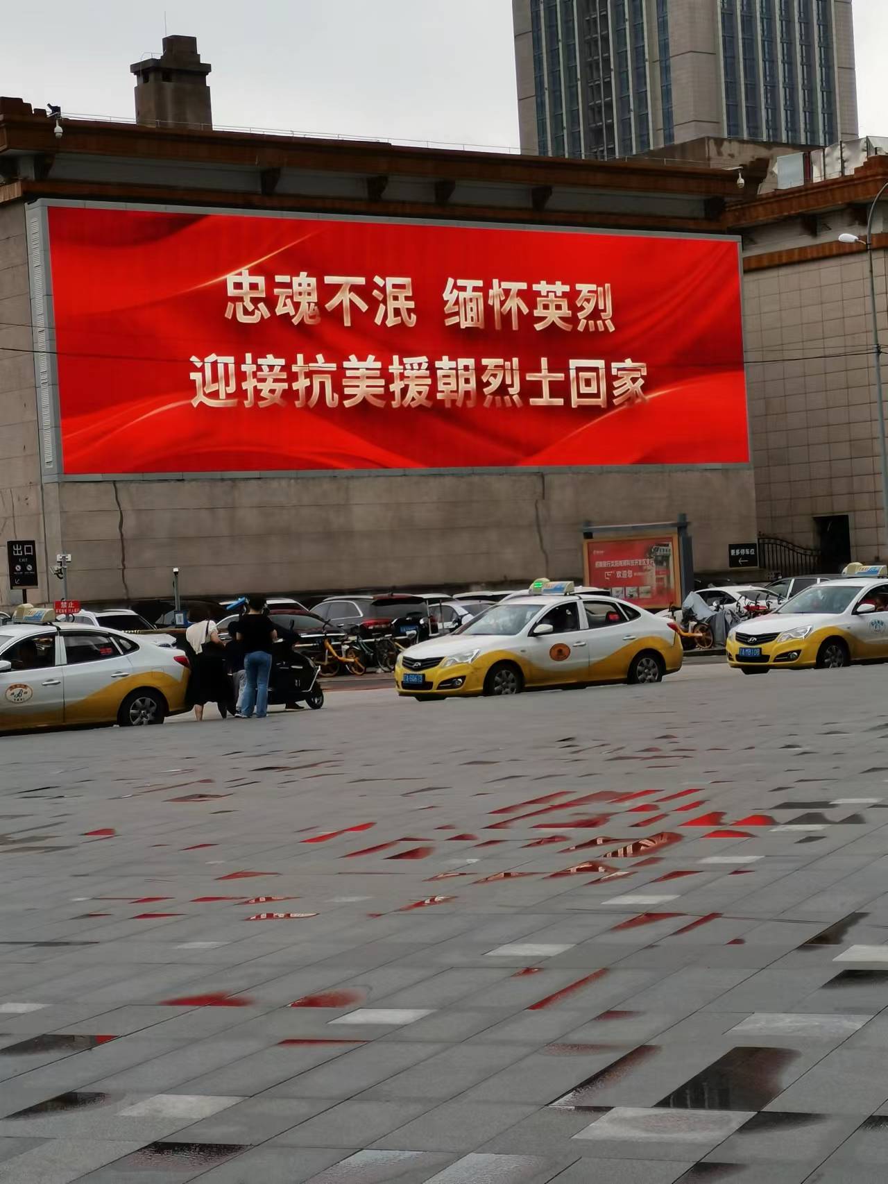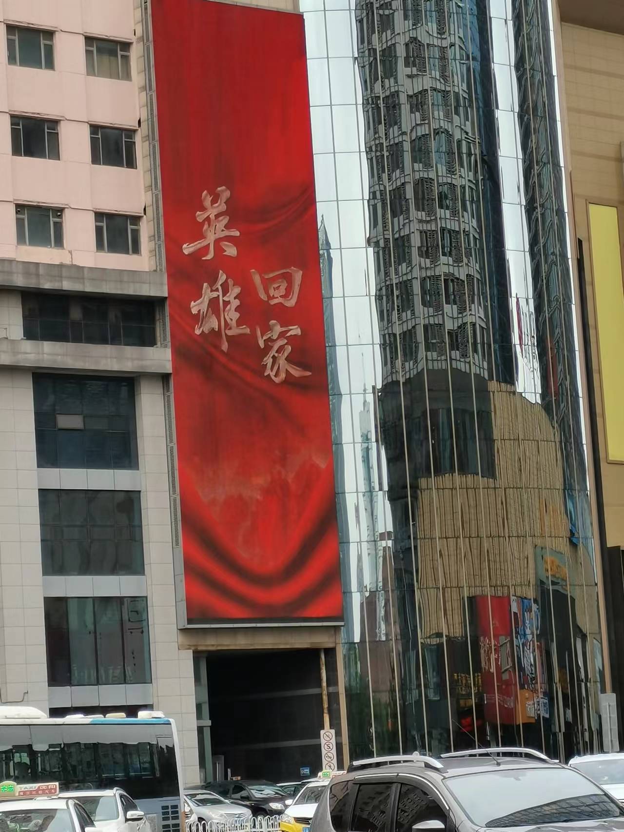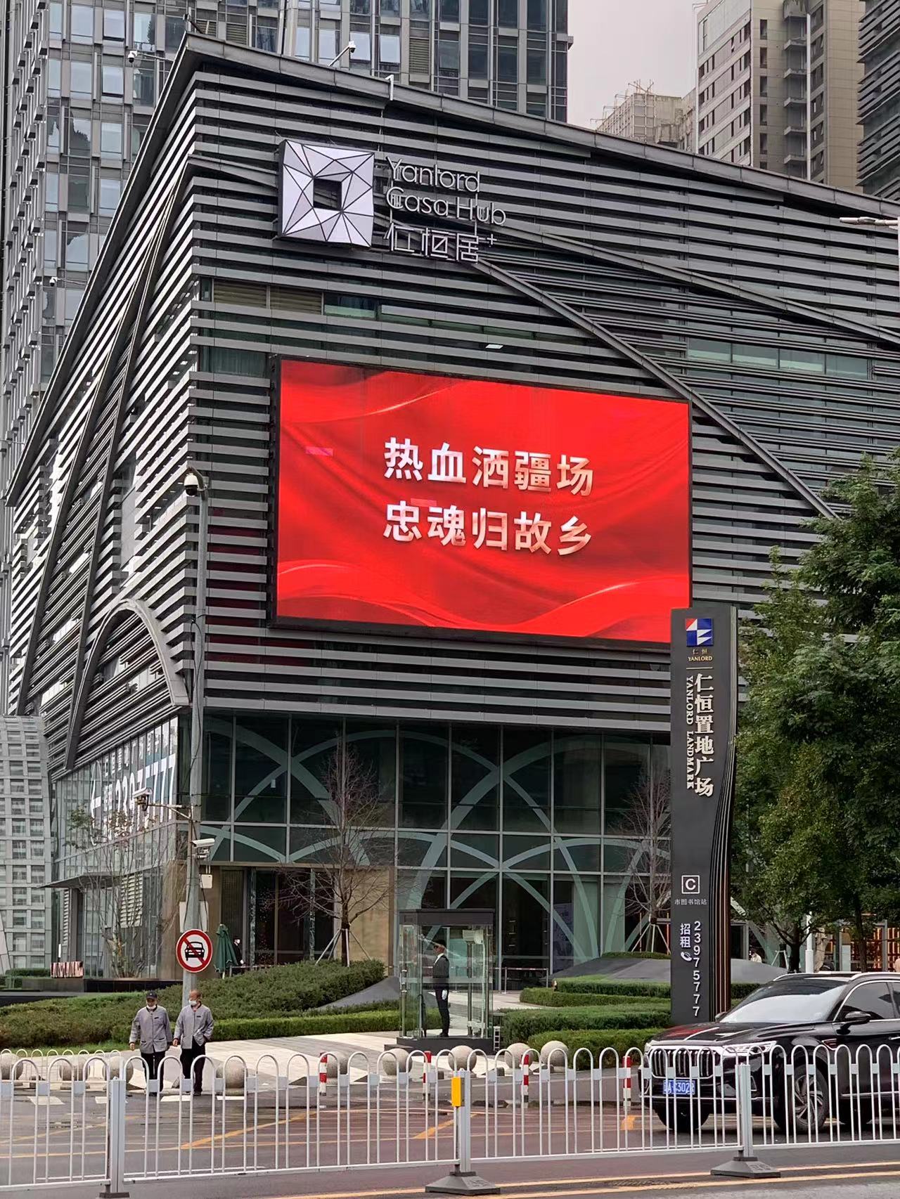 沈陽全城致敬,樓宇大屏幕上寫著“熱血灑疆場 忠魂歸故鄉”、“向最可愛的人致敬”,行駛在路上的出租車滾動字幕“英雄回家”,市民紛紛向英烈致以最崇高的敬意。