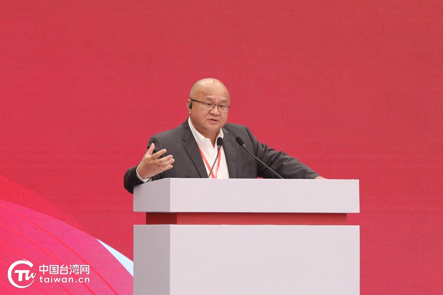 中共中央臺辦、國務院臺辦副主任龍明彪在頒獎儀式上通過視頻致辭。(中國臺灣網 符海川 攝)