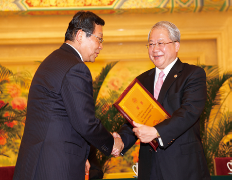 海協會顧問陳雲林會見丁鯤華榮譽會長。