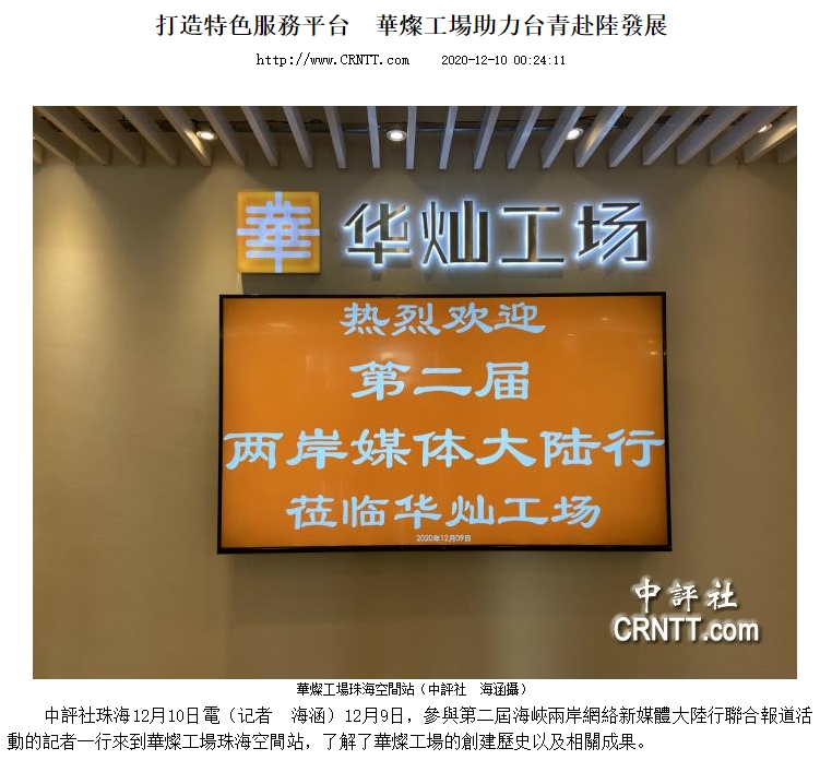 【香港中評社】打造特色服務平臺 華燦工場助力臺青赴陸發展