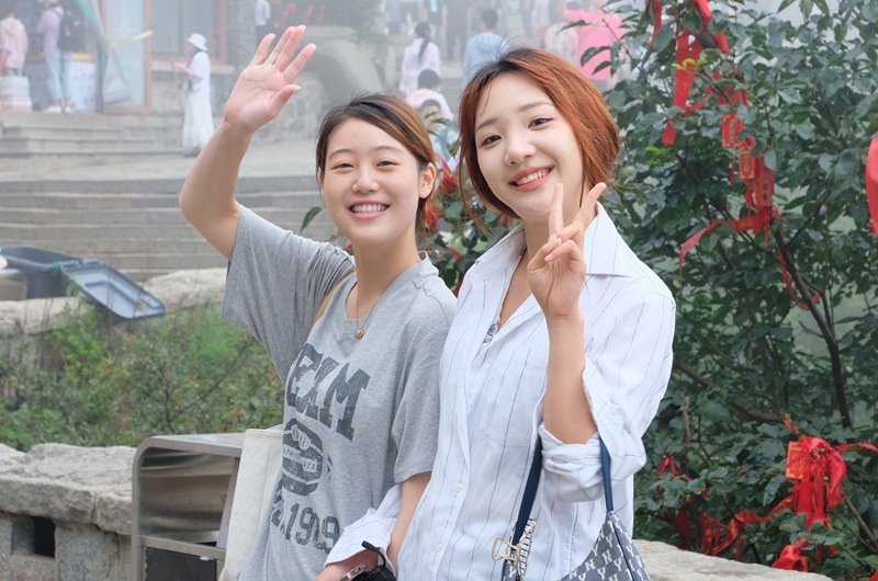 7月28日一早,兩岸青年乘坐纜車,穿過雲霧,來到了“天下第一山”泰山。走過南天門、天街、天蓬,欣賞大小碑碼、摩崖石刻,感受書法藝術的魅力,領略東方文明。在“五岳獨尊”石碑處打卡留念,在玉皇頂祈福俯瞰山下景色,真正體會到杜甫詩中所說的“會當淩絕頂,一覽眾山小”。
