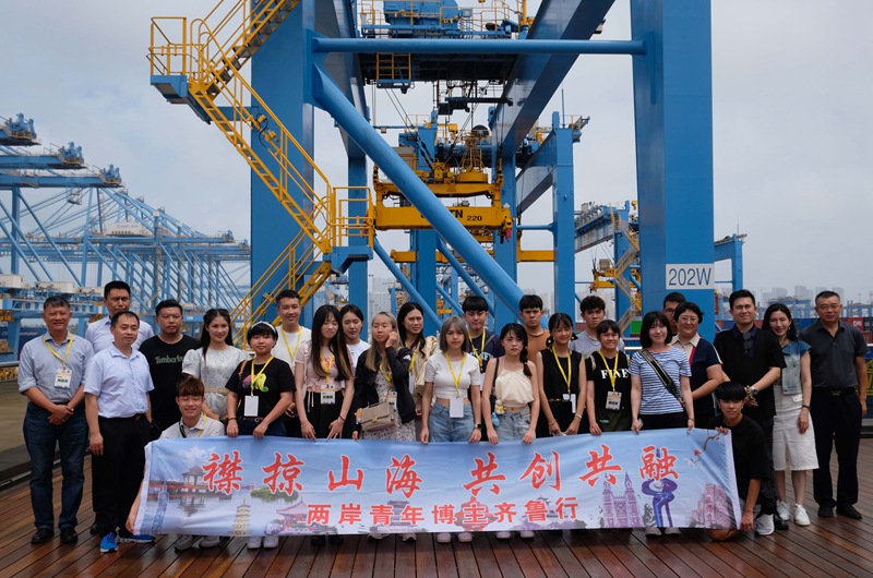 7月31日上午,兩岸青年來到山東港口智慧綠色港口建設的“排頭兵”——山東港口青島港全自動化碼頭。瞭解碼頭建設發展情況,以及為碼頭建設前赴後繼工作者們的故事。在交流中心,大家還觀看了山東港口和全自動化碼頭宣傳片,感受自主創新技術和綠色低碳等在碼頭建設發展中起到的關鍵作用,感受中國效率,中國速度。