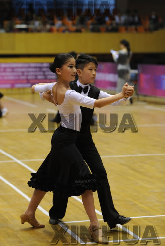 4月15日,小選手們在合肥市第六屆體育舞蹈公開賽上進行比賽。