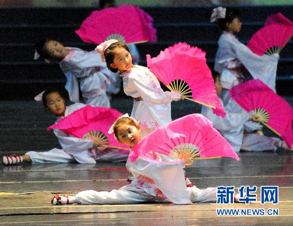 7月16日,小演員們在舞臺上表演。當日,“慶祝建黨90周年中國舞蹈家協會第150屆少兒舞蹈展演暨吉林省第十四屆少兒舞蹈大賽”在長春市拉開帷幕,在展示吉林省各地舞蹈教學成績的同時,也為剛剛放暑假的小學生們開設一個展示自己的舞臺。新華社記者 齊海山 攝