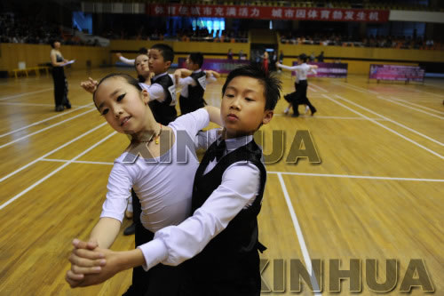 小選手們在合肥市第六屆體育舞蹈公開賽上進行比賽