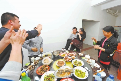 為感激愛人一年的支持,陳日東抱起愛人,向客人敬起酒來。