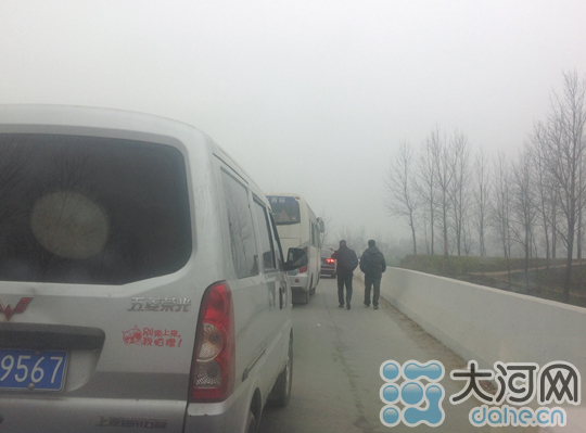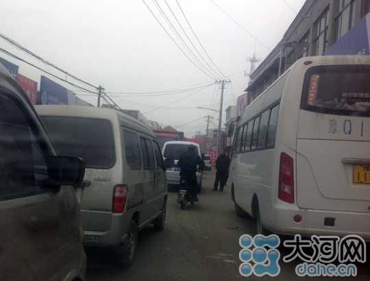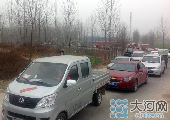 2月3日上午,記者先是在遂平縣沈寨鎮鎮政府東側遭遇堵車,隨後,又在沈寨通往遂平縣城的鄭灣橋上遭遇了長時間的擁堵,在該橋的南北兩側,懸挂各地牌照的車輛排成了數百米的長龍,有百余輛車被堵,在等待了40多分鐘後,記者才“突出重圍”。