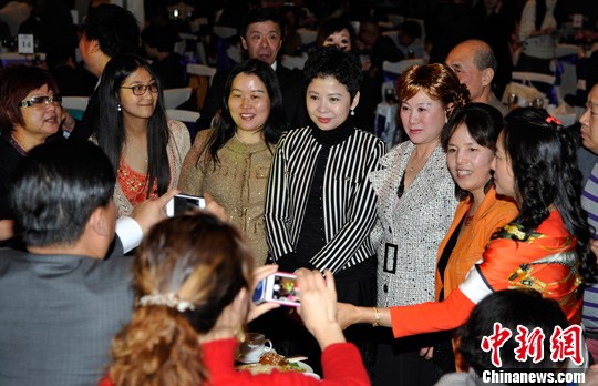 董文華等著名歌唱家在當晚舉行的招待會上受到當地各界僑胞的熱烈歡迎。中新社發 毛建軍 攝