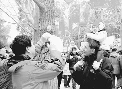 北京地壇廟會,許多遊客全家出動。本報記者 王昊男攝