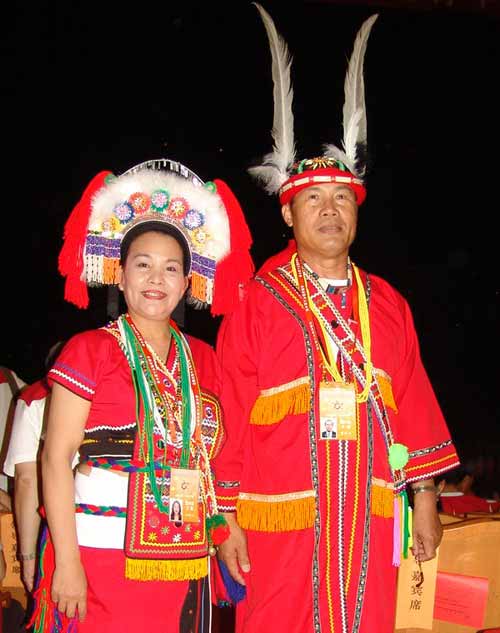 阿美族人的服飾,女孩子幾乎都是以鮮紅色為代表,衣服上並沒有特殊的裝飾,多以素面為主。男孩子的服飾則更簡單,一律都是短褲,赤膊上身。阿美族人的服飾以紅色為代表色,在原住民族群中,屬于鮮艷活潑族群,因此在歌舞表現上,也相當熱鬧,而在舉手投足間也表達出阿美族人樂天知命的個性。