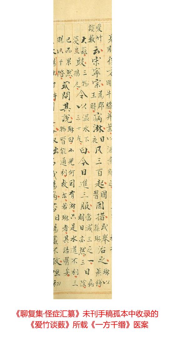《聊復集·怪症匯纂》四種未刊稿本中,就搜錄了《愛竹談藪》所載宋代《一方千緡》之醫案: