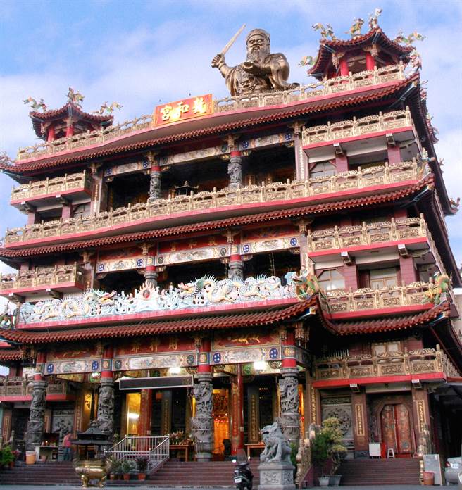 南投草屯敦和宮7層樓高建築,樓頂供奉的“武財神”趙天君銅像高達162尺。(圖片來源:臺灣“中國時報”)