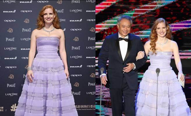 潔西卡雀斯坦首度造訪臺灣,與李安一同頒發金馬獎。(圖片來源:臺灣“中時電子報”)