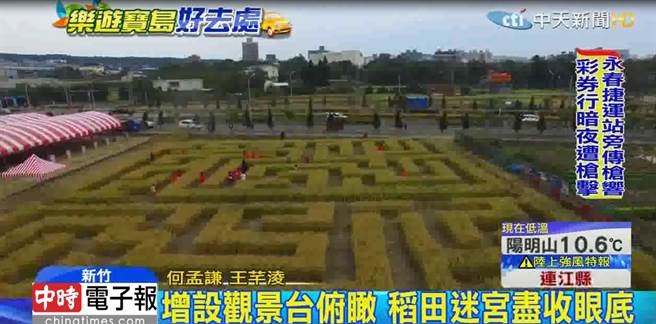從高空俯瞰600坪稻田迷宮蜿蜒曲折。(圖片來源:臺灣“中天新聞”)