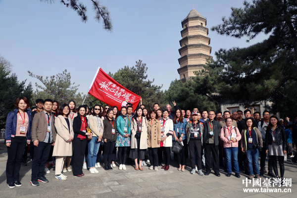 “中華文明凝心鑄魂之旅”2018全國網絡媒體主題採訪活動記者在寶塔山下合影。