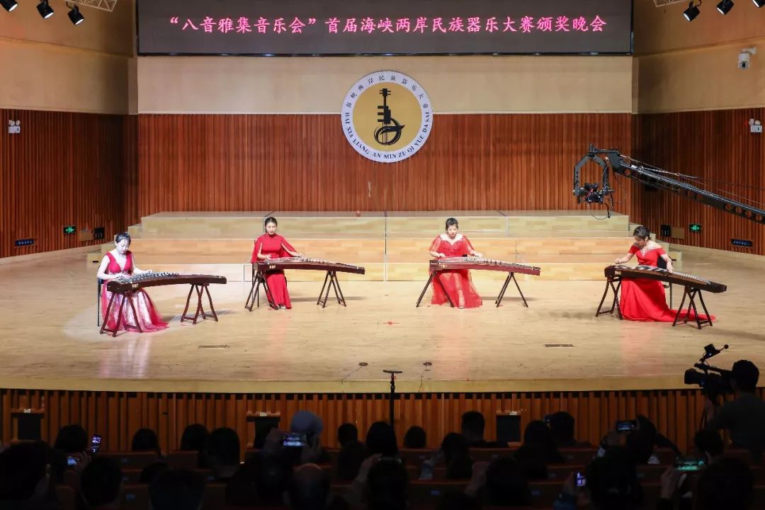 當晚,“八音雅集音樂會——首屆海峽兩岸民族器樂大賽頒獎晚會”在廈門市五緣音樂廳舉辦。兩岸高校的民樂新秀、大賽獲獎代表和著名民樂演奏家聯袂登場,以中華之民樂,匯八音之雅集,共同呈獻了一場精彩絕倫的專業演出,同時,晚會還為大賽的獲獎選手隆重頒獎。有近千名廈門市民到場觀賞,感受歷久彌新的雅樂國風,共話兩岸同胞血脈親情。