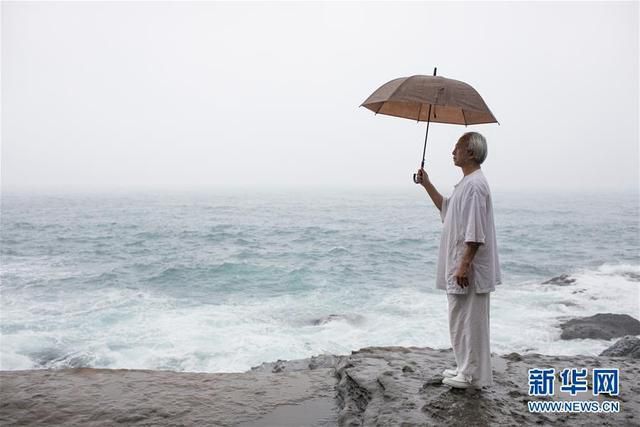 林谷芳在雨中眺望海峽(2019年12月18日攝)。他說,海峽對他那一代的人有著特殊意義。