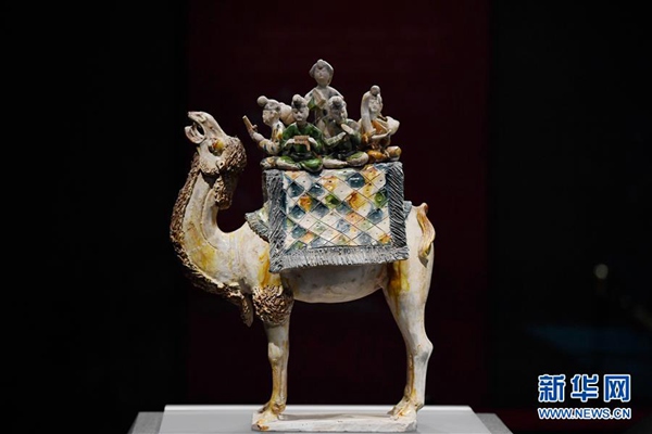 這是在陜西歷史博物館展出的唐三彩駱駝載樂俑(3月25日攝)。新華社記者 李一博 攝