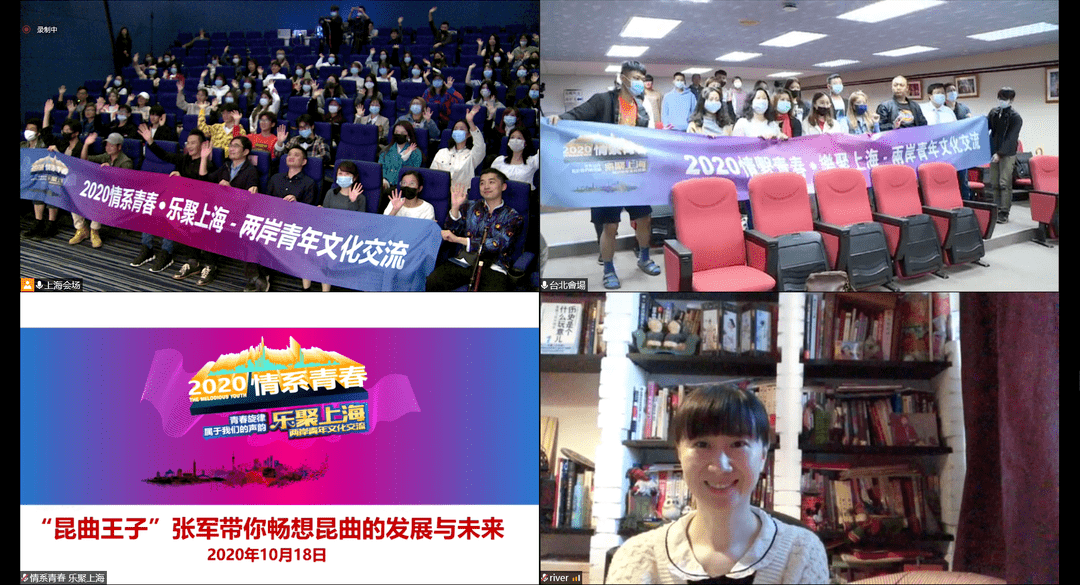 10月18日,2020“情係青春˙樂聚上海”兩岸青年文化交流活動啟動儀式暨“昆曲王子”張軍雲上講座在滬成功舉辦。活動首次以線上形式開展,邀請海峽兩岸戲曲和音樂相關專業60名青年在雲端相聚,圍繞戲曲和音樂兩大主題開展交流。