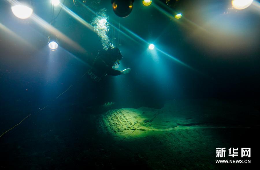 3月15日,重慶涪陵白鶴梁水下博物館迎來了第三次閉館修繕後的首次潛水員水下清理作業。潛水員通過壓力艙,進入水下40多米的白鶴梁題刻無壓容器罩中,重點清理水下燈具和燈罩、參觀廊道的觀察窗口玻璃,以及題刻本體上的泥沙。