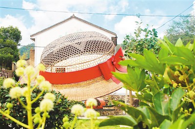 城楊村村民俞振飛創制的“大草帽”休憩亭