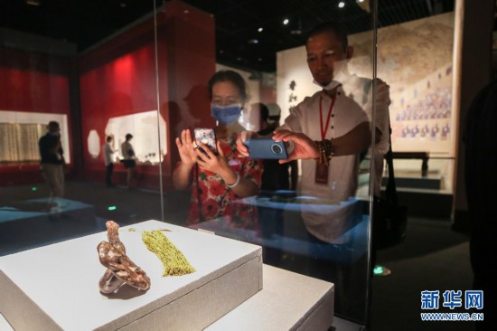 4月13日,觀眾在海南瓊海的南海博物館參觀故宮博物院藏黃花梨沉香文物展。