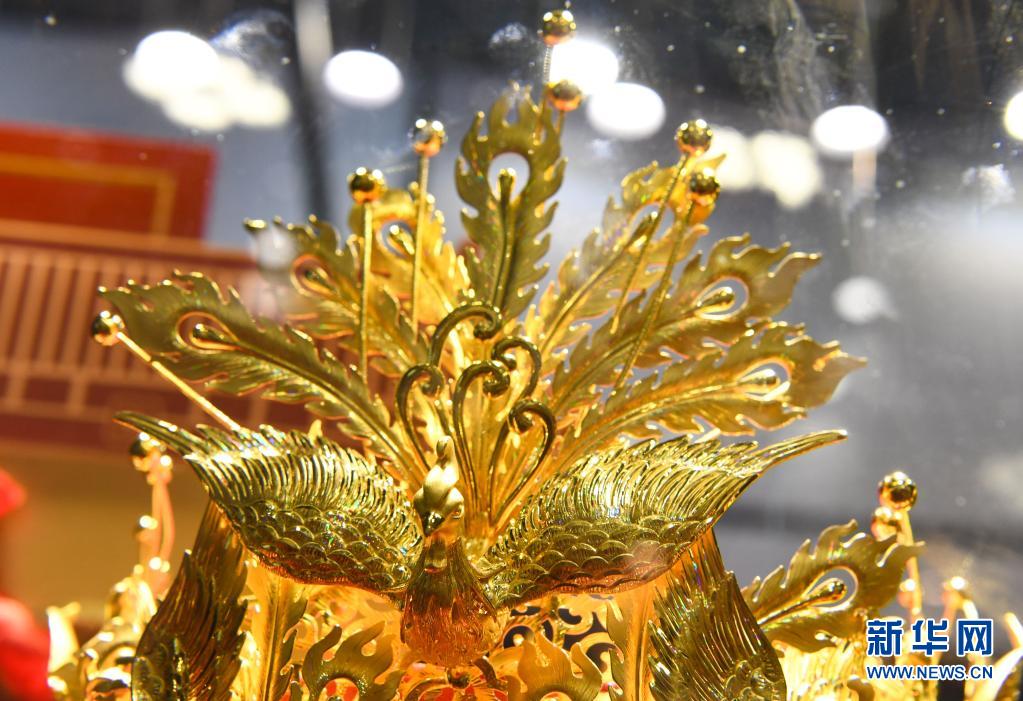 這是參展商老鳳祥在首屆消博會上展示的首飾(5月10日攝)。