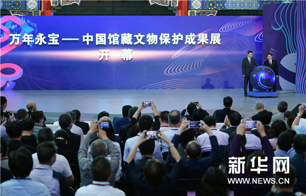 文化和旅遊部黨組書記、部長胡和平與北京市委副書記、市長陳吉寧共同為“萬年永寶——中國館藏文物保護成果展”揭幕(新華社記者 李賀 攝)