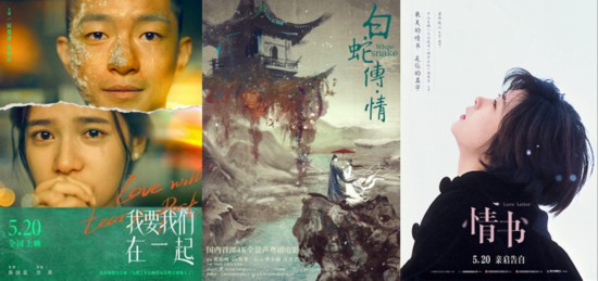 2021年5月20日是周四,與周末距離較近,因此吸引了多部愛情題材類影片的定檔,例如經典影片《情書》、粵劇電影《白蛇傳·情》,“五一”的大熱門《你的婚禮》也一度選擇在這天上映。